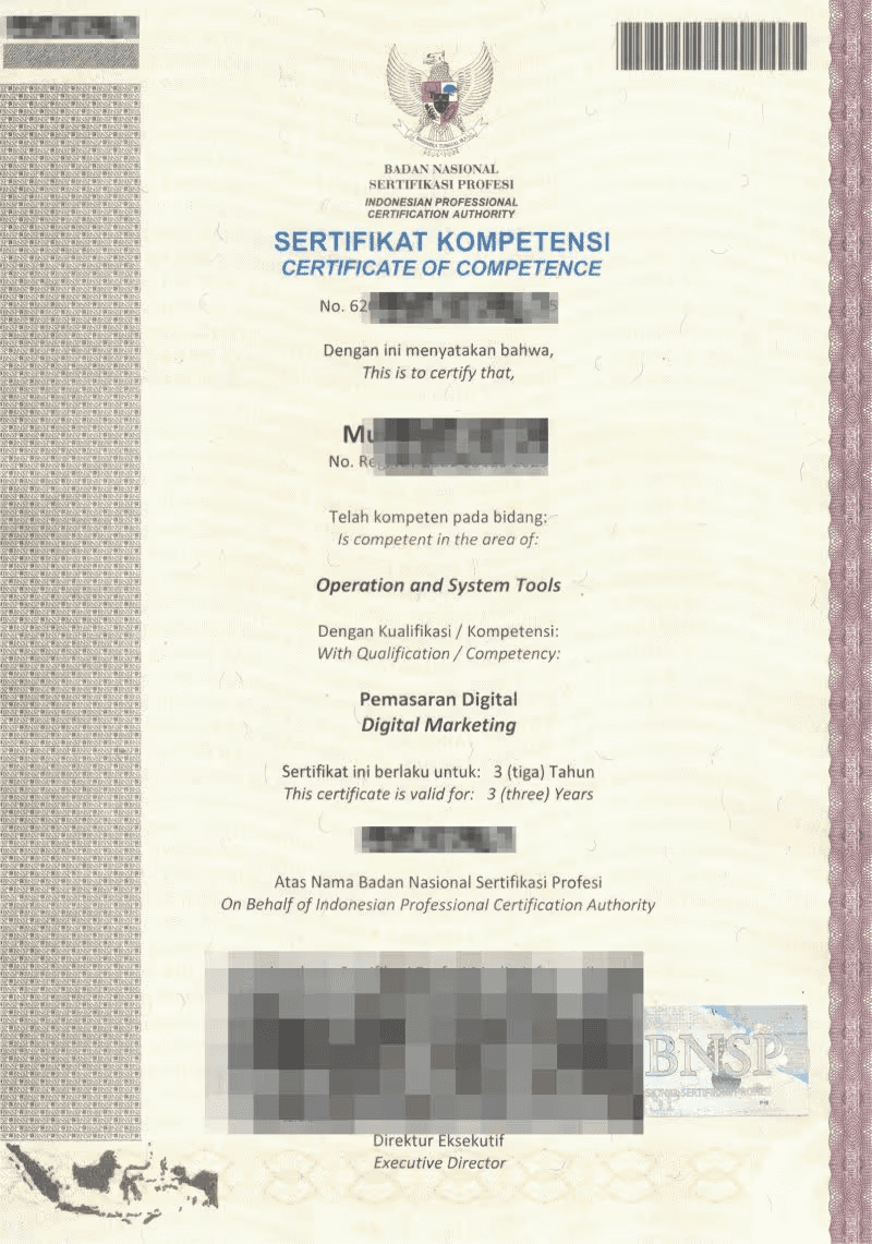 Sertifikat (Fisik & Digital) yang di-endorse oleh FPSB Indonesia